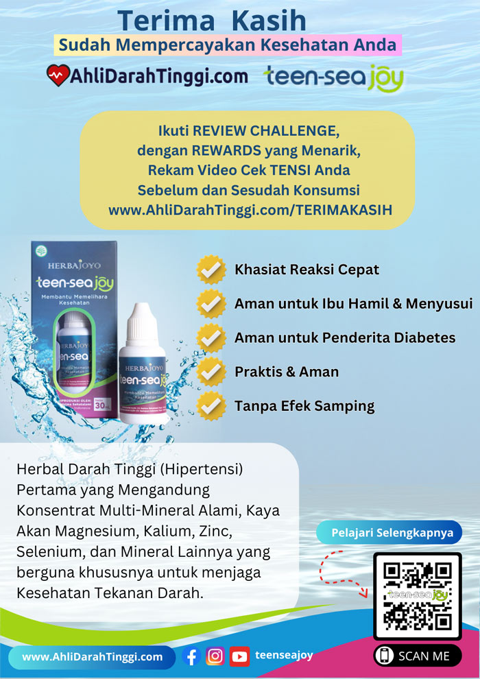 Teenseajoy merupakan salah satu rekomendasi Anti-Hipertensi yang PRAKTIS, ALAMI, AMAN, HALAL,